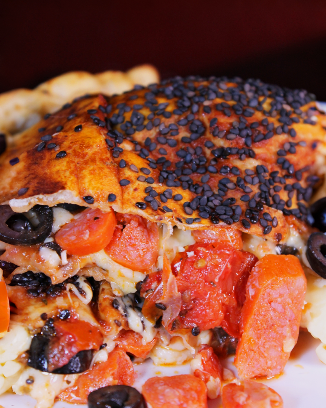 Chorizo argentino, aceitunas negras y jitomate rostizado