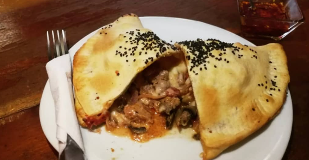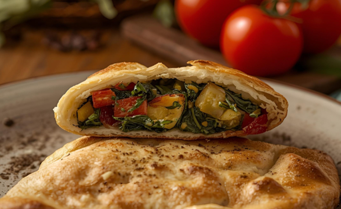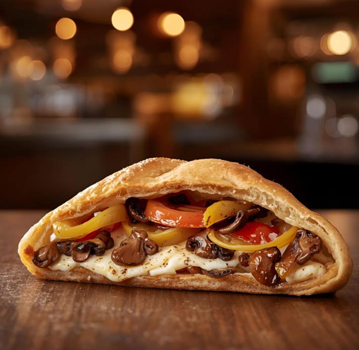 Jitomate rostizado, queso de cabra, pimiento y champiñones