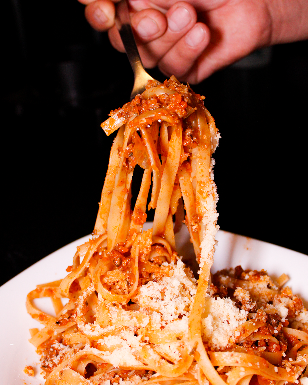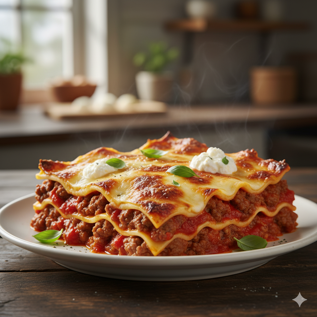 Porción generosa de deliciosas capas de ragu de carne y queso